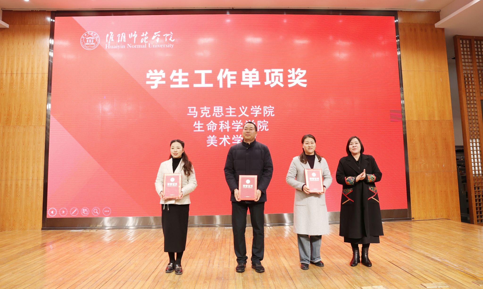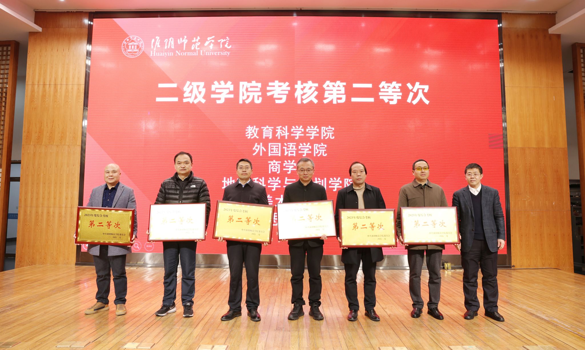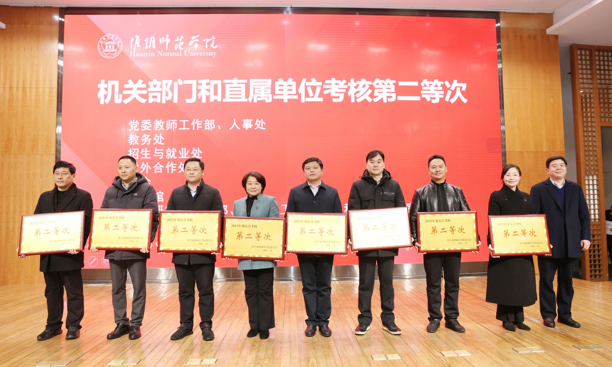 校领导分别为荣获综合考核第一等次单位、第二等次单位、年度最佳进步奖、优秀等次领导班子,以及党的建设、学科建设、科研工作、教学工作、师资队伍、学生工作考核前三名的单位颁奖。