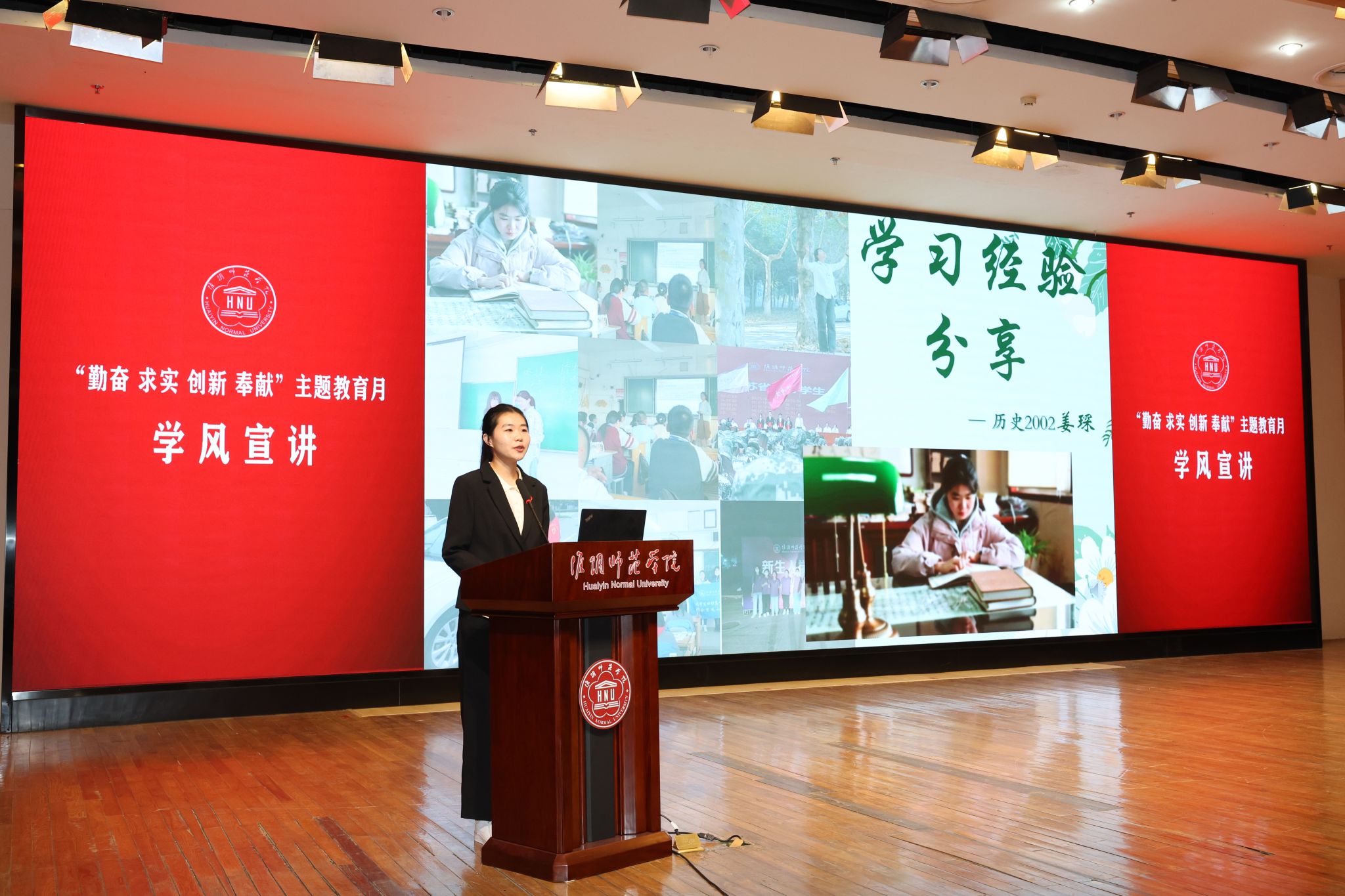 动员会后,举行了“勤奋 求实 创新 奉献”主题教育月首场学风宣讲会,国家奖学金获得者历史文化旅游学院姜琛、计算机科学与技术学院张浩进行了首场宣讲。