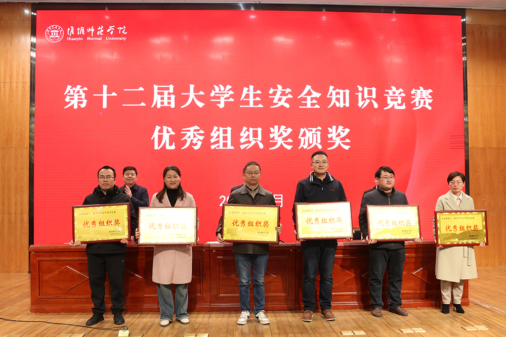 图为校领导为获江苏省第十二届大学生安全知识竞赛优秀组织奖代表颁奖。记者 唐瑀 摄