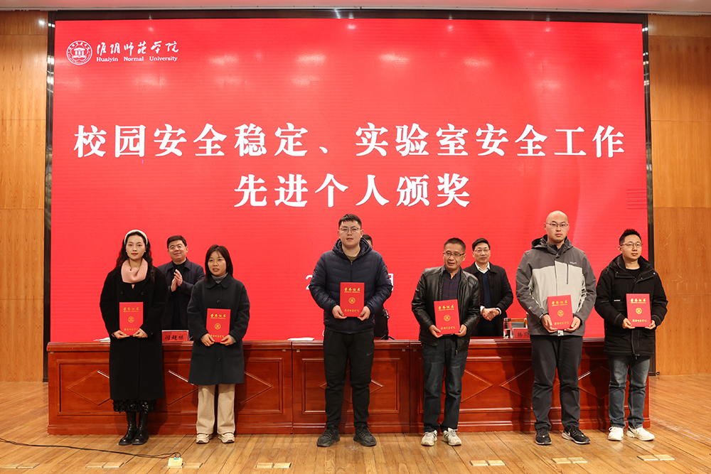 图为校领导为安全稳定工作和实验室安全工作先进个人颁奖。记者 唐瑀 摄