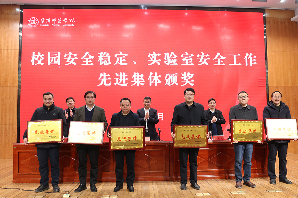 图为校领导为安全稳定工作和实验室安全工作先进集体颁奖。记者 唐瑀 摄