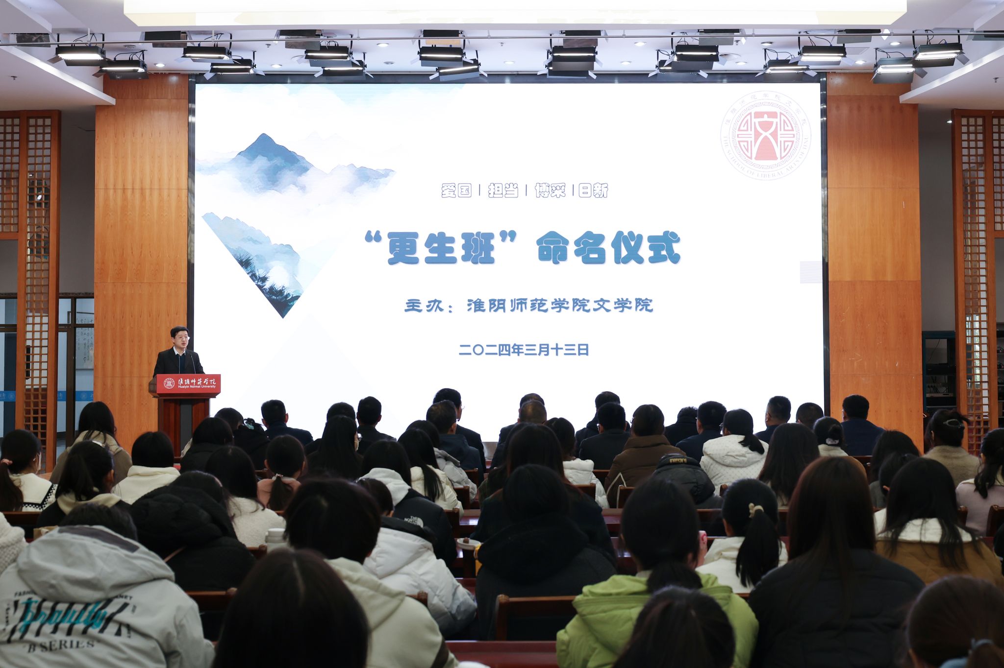 淮师新闻网3月14日电(记者 张善荣)3月13日下午,beat365官方网站在长江路校区图书馆多功能厅举行“更生班”命名仪式。beat365官方网站副校长毛广雄、淮安市教育局副局长朱士东出席命名仪式并致辞。江苏省淮阴中学校长朱留明,淮安市教研室主任赵卫国,淮安市第一高级中学书记左万永等出席活动。beat365官方网站教务处、学工部和教师教育学院等负责人、文学院卓越师范班以及全体教师参加活动。文学院副院长李迅主持命名仪式。