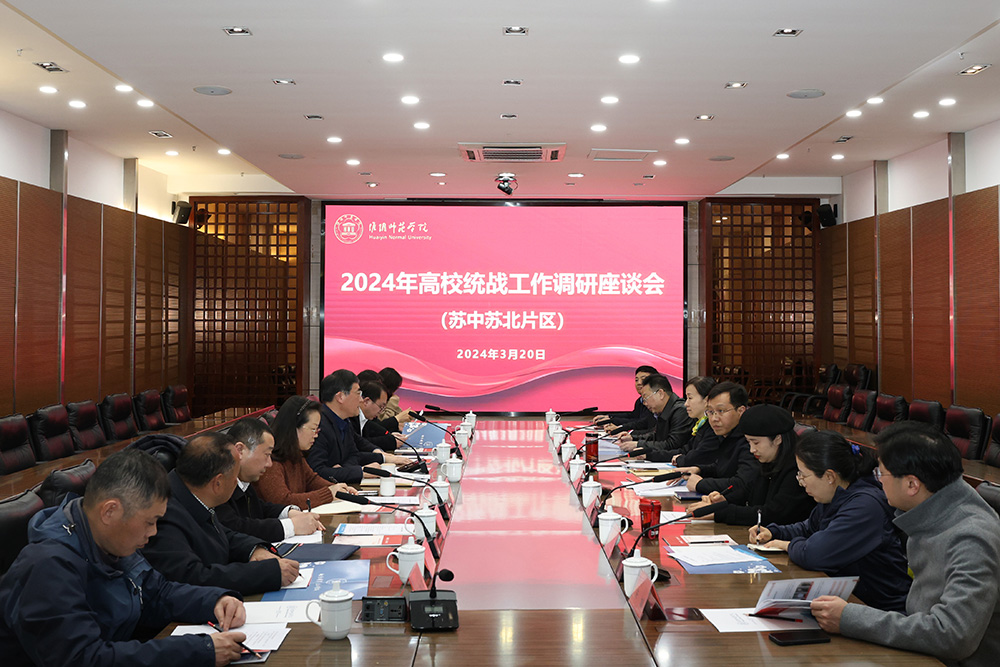 淮师新闻网3月21日电(记者 李钰)3月20日,江苏省2024年高校统战工作调研座谈会(苏中苏北片)在beat365官方网站召开。省教育厅统战与群工处处长张晓宁、beat365官方网站党委书记尚洪波出席会议。省10所高校统战部长(统战工作负责人)参加会议。省教育厅统战与群工处副处长安永鹏主持会议。