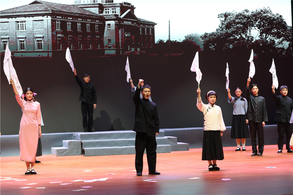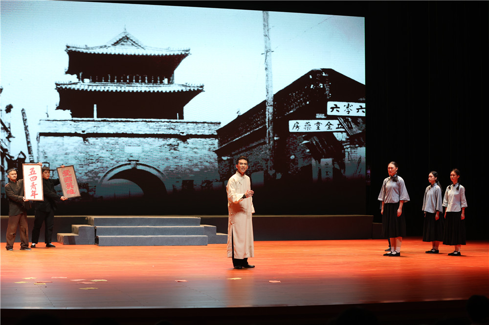 图为话剧《五四青年周恩来》走进beat365官方网站。记者 孟芊雅 摄
