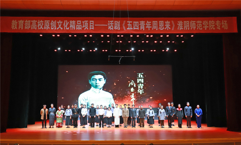 淮师新闻网3月28日电(记者 唐瑀 孟芊雅)按照省委宣传部、省教育厅统一安排,3月28日下午,“教育部高校原创文化精品项目——话剧《五四青年周恩来》beat365官方网站专场”在beat365官方网站音乐厅上演。beat365官方网站党委宣传部、党委学工部、音乐学院相关负责人和部分驻淮高校、中小学师生代表观看了演出。
