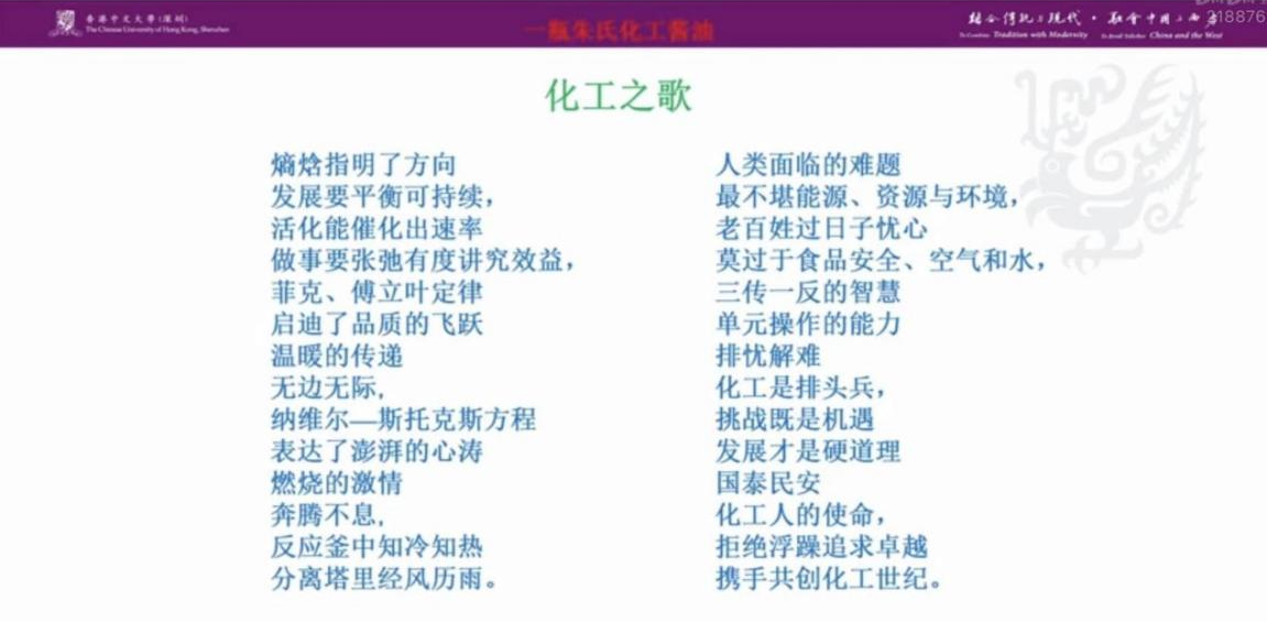 朱世平院士用幽默风趣的“化工之歌”为主线,并提出“没有化工,这地球能撑多少人?”的话题,引人深思。朱院士以鞭辟入里的见解、通俗精炼的讲授为我们展现了独特的“化工之美”,传达化工人艰苦卓绝、追求创新的精神,坚定化工人造福社会的使命!