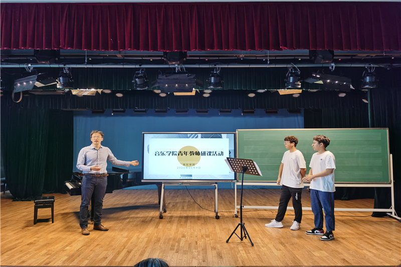 淮师新闻网10月7日电(记者 刘茂林)为提升青年教师的专业水平、夯实教学技能、促进课堂教学能力的整体提升。音乐学院于10月4日上午在音实楼实验剧场开展“青年教师研课 ”活动,学院领导、系主任参加,并邀请陈旻、陈英两位老师莅临指导。