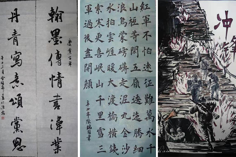 为了营造良好的活动氛围,马院蜜蜂志愿微讲团、教科院2004、计科院1903等团支部多角度谋划、多形式推进,开展党史知识竞赛、主题征文比赛等,使同学们在比赛中重温党的光辉历程,树立听党话、跟党走的坚定理想信念。传媒学院2005、美术学院1902、音乐学院1803等团支部灵活选择有效方式,发挥专业特长,开设海报设计、书法展示、红歌联唱等活动,同学们用颜料、用毛笔、用歌声抒发心中的炽热感情,一幅幅精美的作品、一个个跳动的音符,表现出大家心中浓浓的爱党之情、爱国之心。