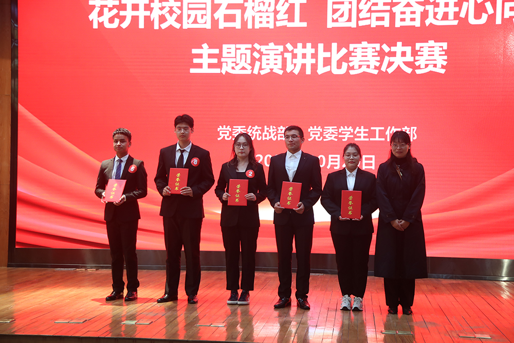 经过学院初赛、学校预赛,共有10名选手脱颖而出进入决赛,选手们结合亲身经历和切身感受,通过典型的事例、生动形象的语言阐述了对“花开校园石榴红,团结奋进心向党”这一主题的理解和认同,流露出对国家的忠诚之情、对家乡的热爱之情和血浓于水的民族团结情。演讲内容既富有真情实感,又不乏理性思考,博得现场观众阵阵热烈的掌声。