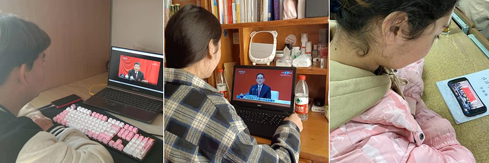 同学们通过看视频、听报告等多种途径学原文,悟思想;通过朋辈交流、座谈讨论等形式,进一步深化对十九届六中全会的重大意义、精神实质和丰富内涵的理解。