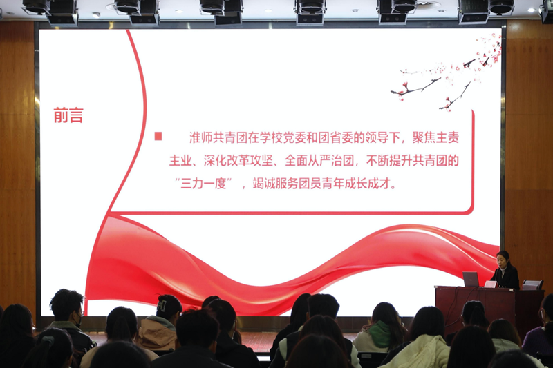校团委副书记纪元以“新时代基层团干部的使命与担当”为题,从引领凝聚青年、组织动员青年、联系服务青年三个方面,介绍了淮师共青团工作的基本情况,并要求大家牢记服务宗旨、永葆理想情怀、明确肩头使命、强化责任意识、勤勉务实做事。团省委组织部朱虹老师通过腾讯视频会议讲述了“智慧团建”系统的基本概念和操作,对党史学习教育、学社衔接、对标定级、团员发展等系统录入功能作出详细介绍,并对各种关于智慧团建系统的常见问题作出解答。校党建专员、关工委社团指导组组长于永恒老师从团支书的基本工作职责出发,通过系统的理论、鲜活的案例,就如何成为优秀的团支书,从提高政治素养、增强学习意识、创新工作载体等方面与大家进行了交流。校团委林旭老师结合团支部工作清单、团支部工作成绩单、PU第二课堂等对基础团务进行了解读,使大家明确了自己的岗位职责和工作任务。