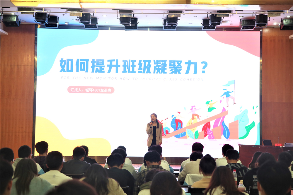 聚焦发展主题,引发头脑风暴。采取“经验分享”“圆桌论坛”相融合的模式,聚焦班级建设的主题和班长成长内核,推动“老生班长示范引”“新生班长跟着学”“关键主题群体议”“优秀经验大家享”,通过思维碰撞,相互启迪,博采众长,让更多的班长勤于探究、精于管理、善于表达,使好的传统得以传承和发展。本次“示范引”的每一位老班长中既是省先进班集体、江苏省优秀社会实践团队、校十佳班集体、校周恩来班的组织者和策划者,也是国家奖学金、国家励志奖学金、校周恩来奖学金等荣誉的获得者,更是班级每学期一等奖学金的获得者,就如李腾同学而言:我作为班长的最后一个任期,接力棒已然交到了你们手中,虽然你们还不知道终点在哪里,但我们可以想象终点的样子,定是一片光明,繁花似锦。历史文化与旅游学院1802班班长叶冰晶从班长的动力管理、目标管理、时间管理和方法管理等四个层面,分享了自己如何成为一名工作能力突出、学习成绩优异的班长;外国语学院1804班班长李腾以学长的身份讲述了“如何在人生的马拉松中跑好班长这一程”、1807班班长吴静分享了“如何成为优秀的自己”;城市与环境学院1801班班长左圣杰以亲身实践介绍了“如何提升班级凝聚力”的具体做法;数学与统计学院1804班班长解读了“如何在周恩来班创建中发挥班长职能”;物理与电子电气工程学院1810班班长黄冉阐述了“明确方法任务 建功立业新时代”。2019、2020级257名优秀的班长齐聚“圆桌论坛”,11个分论坛围绕“班级干部在班级事务中的职责与担当”“如何加强班级的学风建设”“班级常规管理的组织与开展”“班级活动的设计与实施”等9个班级建设的内核主题引发头脑风暴,分享班级建设经验、探讨班级管理难题、创新工作思路、建立长效机制。论坛结束后,每一小组发言人根据小组研讨成果面向新生班长进行现场汇报,通过以工作研讨指导工作实践,以实践之能反哺成长之效。历史文化旅游学院、文学院在论坛第二小组总结汇报时认为,读书之风是治学之风,更是大学的气质和灵魂。要强化学风建设,就要建立学业导师、朋辈导师制,通过老师讲、干部谈、学生悟等方式,依托形式丰富、专业特色的学风建设活动,强化学生的学业和职业规划。