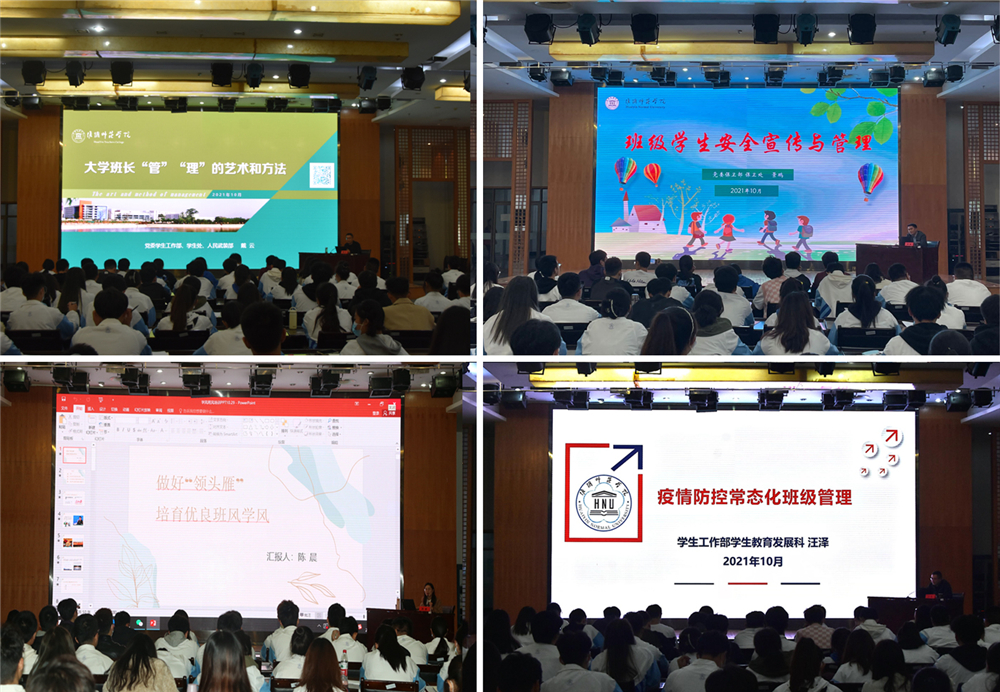 注重实务培训,培育工作思维。着眼于班长工作的职责范畴、能力素养和方法艺术三个维度,通过专题讲座,力求强化角色定位、理清工作思路、学会工作方法、培育工作智慧,实现以讲解惑、以讲传技、以讲增智。组织开展了新生班长规章制度闭卷考试;集中观看了四川省公安厅网络安全保卫总队邓筱苏警官作的《大学生信息网络安全教育》视频,邓警官从网络个人信息保护、常见电信网络诈骗手法及典型案例解析、网络犯罪生态及关联犯罪等方面,为学员们进行知识科普。培训现场,校党委学生工作部、学生工作处副部(处)长戴云以《班长“管”“理”的艺术与方法》为题,从“管”之范畴、能力与方法,“理”之岗位职责、建设目标、工作机制和制度规则等维度,通过理论阐述、经验分享和案例分析,为学员们生动、全面、深入地解读了大学班长“管”与“理”二字的内涵,并要求学员们要守好一个底线、瞄准一个目标、做好一个规划、阅读一批经典;党委保卫部、保卫处副部(处)长景鹏结合规章制度的学习宣讲、疫情管控的价值意义、消防安全的监督提醒、师生之间的桥梁中介等四个方面,为学员们介绍了《班级学生安全宣传与管理》;2019年江苏省辅导员年度人物、法政学院辅导员陈晨从《人民日报》痛批沉睡中的大学生:你不失业,天理难容开篇,围绕当前高校班风学风的整体现状、班长在学风建设中作用以及如何发挥班长在班风学风中建设中作用三个向度阐释了班风学风的价值意义以及班长的使命担当。校学生工作处学生教育发展科汪泽具体介绍了疫情防控常态化下班级管理操作实务和学生工作信息化平台使用。