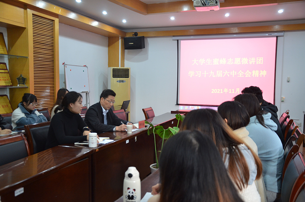 交流会上,蜜蜂微讲团汇报了社团近阶段工作开展情况,以及开展宣讲党的十九届六中全会精神的工作安排。与会团员分别交流了学习党的十九届六中全会精神的心得与体会。