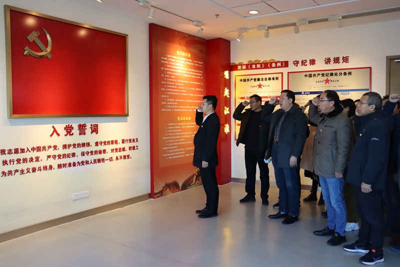 在淮安市党史陈列馆和车桥战役纪念馆内,大家回顾了建党和大革命时期、土地革命时期、全民族抗战时期、解放战争时期淮安大地波澜壮阔的革命历程,通过与史实、文物对话,全体同志深切缅怀革命先烈的崇高精神和不朽伟业。一张张生动的照片、一幅幅鲜活的图画、一个个感人的事迹全面记录着中国共产党开展革命斗争的光辉历程,令党员们印象深刻、感动不已。在宣誓墙前,全体党员面向党旗重温入党誓词,表达了为党的事业奋斗终身的决心。