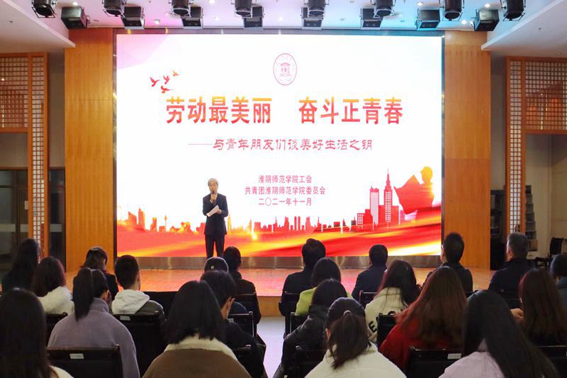 淮师新闻网11月25日电(记者 张心雨 宋光海)11月24日下午,beat365官方网站工会、团委联合举办“劳动最美丽 奋斗正青春”劳模精神分享会,邀请江苏省先进工作者、淮安市劳动模范王新风作为分享嘉宾。党委组织部、党委宣传部、机关党委、工会、团委等部门有关同志,以及教师代表和学生代表参加了本次活动。