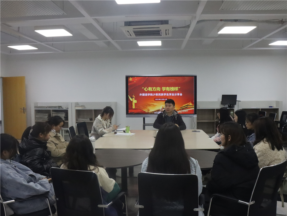 多措并举加强学业指导。为了帮助2021级少数民族学生更快的适应大学学习生活, 激发学习积极性,营造浓厚的学习氛围,“+1”党建工作室分学院分专业开展了“心有方向,学有榜样”少数民族学生学习交流会,传授专业学习方法,分享考级考证攻略。分专业成立学习小组,发挥朋辈互助作用,共学共进。督促少数民族新生每日早读打卡,养成良好的学习习惯,提高学习效率。