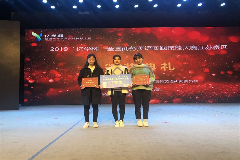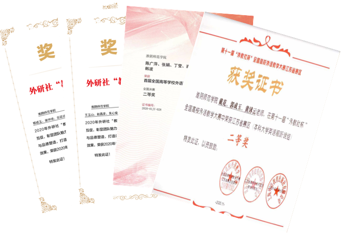 外国语学院各专业以专业四、八级通过率为抓手,通过“以赛促学、以赛促教”,鼓励学生参加各类学科竞赛、创新创业大赛。2019年英语专业四级通过率达92.07%,高出全国师范类大学平均通过率34.56个百分点,高出全国综合性大学平均通过率39.38个百分点。共有100多名学生在国家、省级以上竞赛中获奖,2名学生分别在2015年、2019年“外研社杯”全国英语写作和阅读大赛中获全国二、三等奖;在“江苏省师范生教学基本功大赛”中获一等奖2人次,二等奖7人次,三等奖1人次,获奖率100%;在2019年“亿学杯”全国商务英语实践技能大赛(江苏赛区)中获团队三等奖;获第三十二届韩素音国际翻译大赛英译汉三等奖1人。