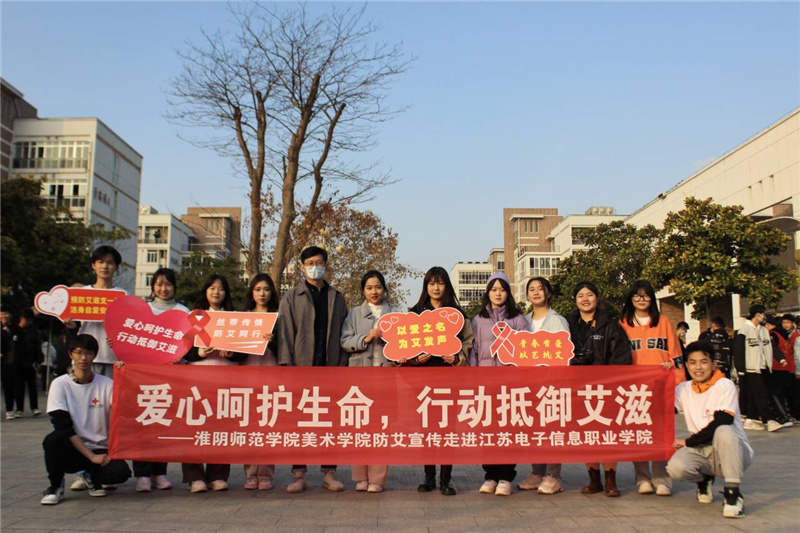 淮师新闻网12月1日电(记者 李天予 张竞夫)12月1日是“世界艾滋病日”。为了让大学生群体了解艾滋病的危害,关心关爱艾滋病患者,淮师美术学院志愿团队在beat365官方网站、江苏财经职业技术学院和江苏电子信息职业学院三所高校开展了“青春有爱 以艺抗艾”主题宣传活动。