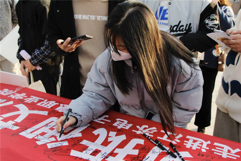在本次活动中,美术学院的志愿者们围绕“防艾知识”开展宣讲,以“防艾”为主题创作了绘画、书法和海报80余幅,发放自主设计的主题文创产品550套,宣传册2000余册。在“爱心呵护生命,行动抵御艾滋”百人签名环节,一名来自江苏电子信息职业学院的学生不禁感叹道:“这是我第一次参加防艾宣传活动,感觉非常有意义。一幅幅精美的美术作品直击灵魂,震撼心灵,生动地表现出了艾滋病的危害。”