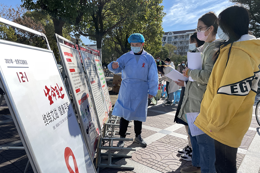 图为淮师举行第三十四个“世界艾滋病日”宣传活动。记者 徐海燕 摄