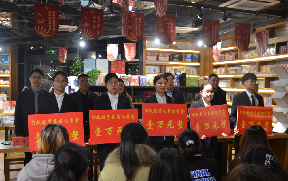 会上,刘小华宣读了2021年九一政教奖助学金受助名单,与会领导为受助学生颁发奖学金。