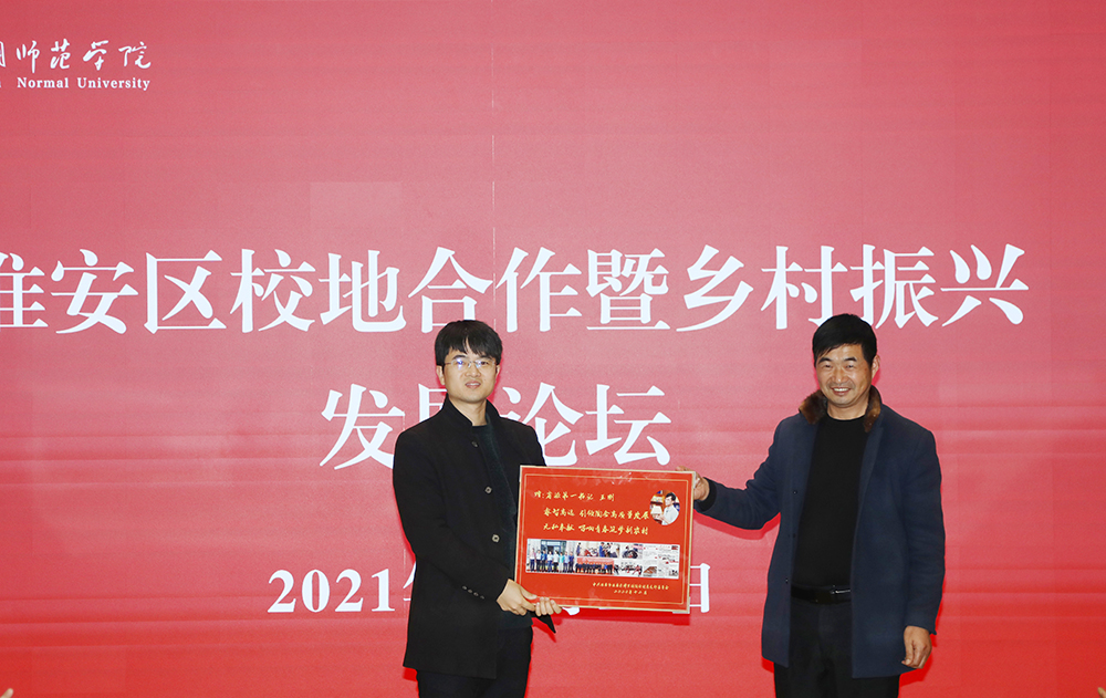 张宇从学校历史沿革、科学研究、服务地方等几个方面介绍淮师的基本情况以及在服务区域现代农业、文化创意、脱贫攻坚和乡村振兴等方面取得的成效。