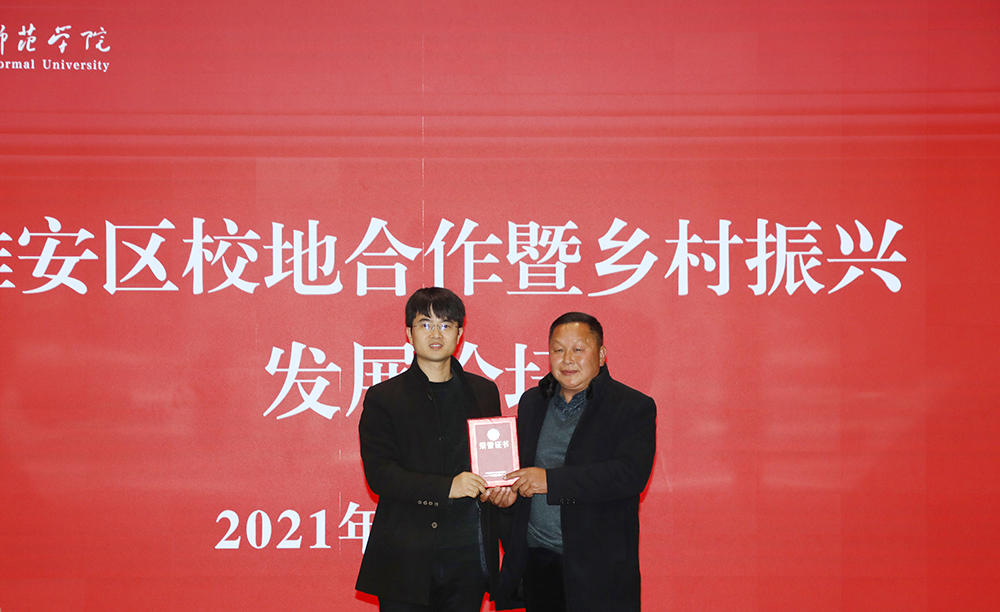 会上,罗松源转交了中共淮安区委组织部向淮阴师院赠送的锦旗。陶舍村向王刚颁发了“荣誉村主任”聘书,赠送了留言册和纪念摆台。