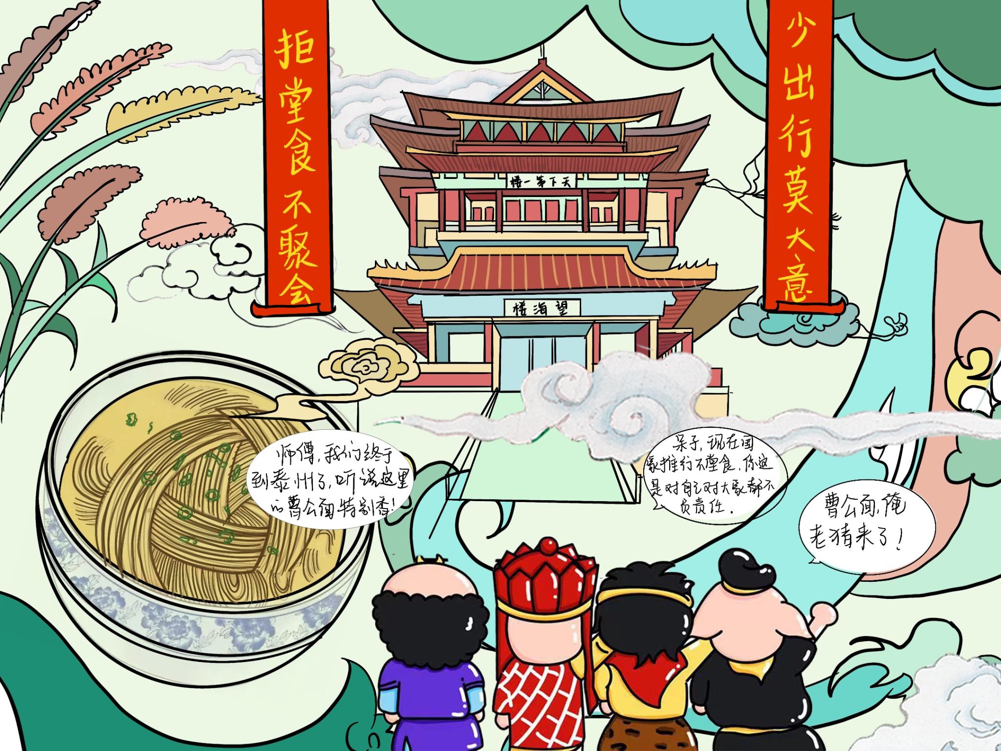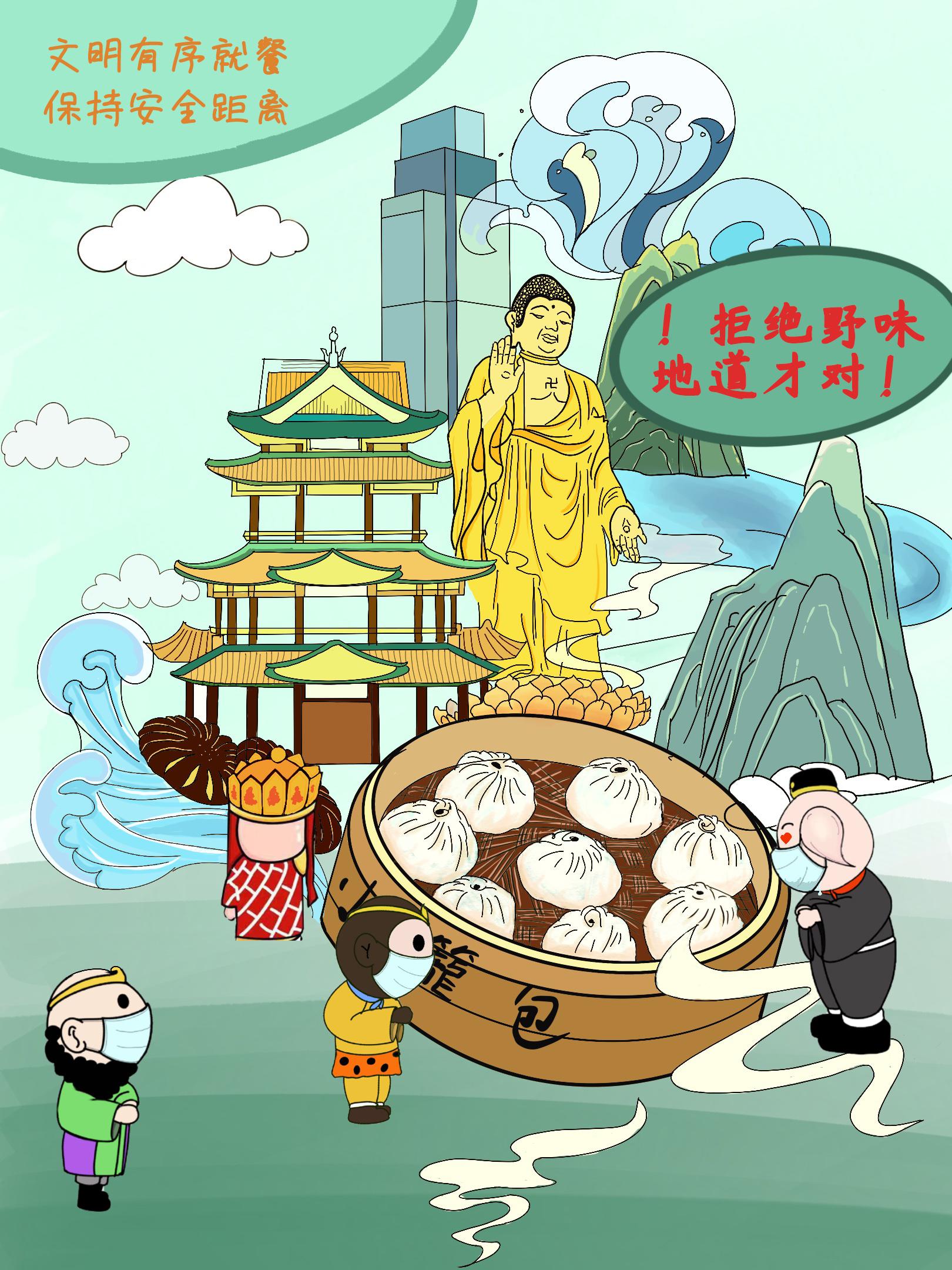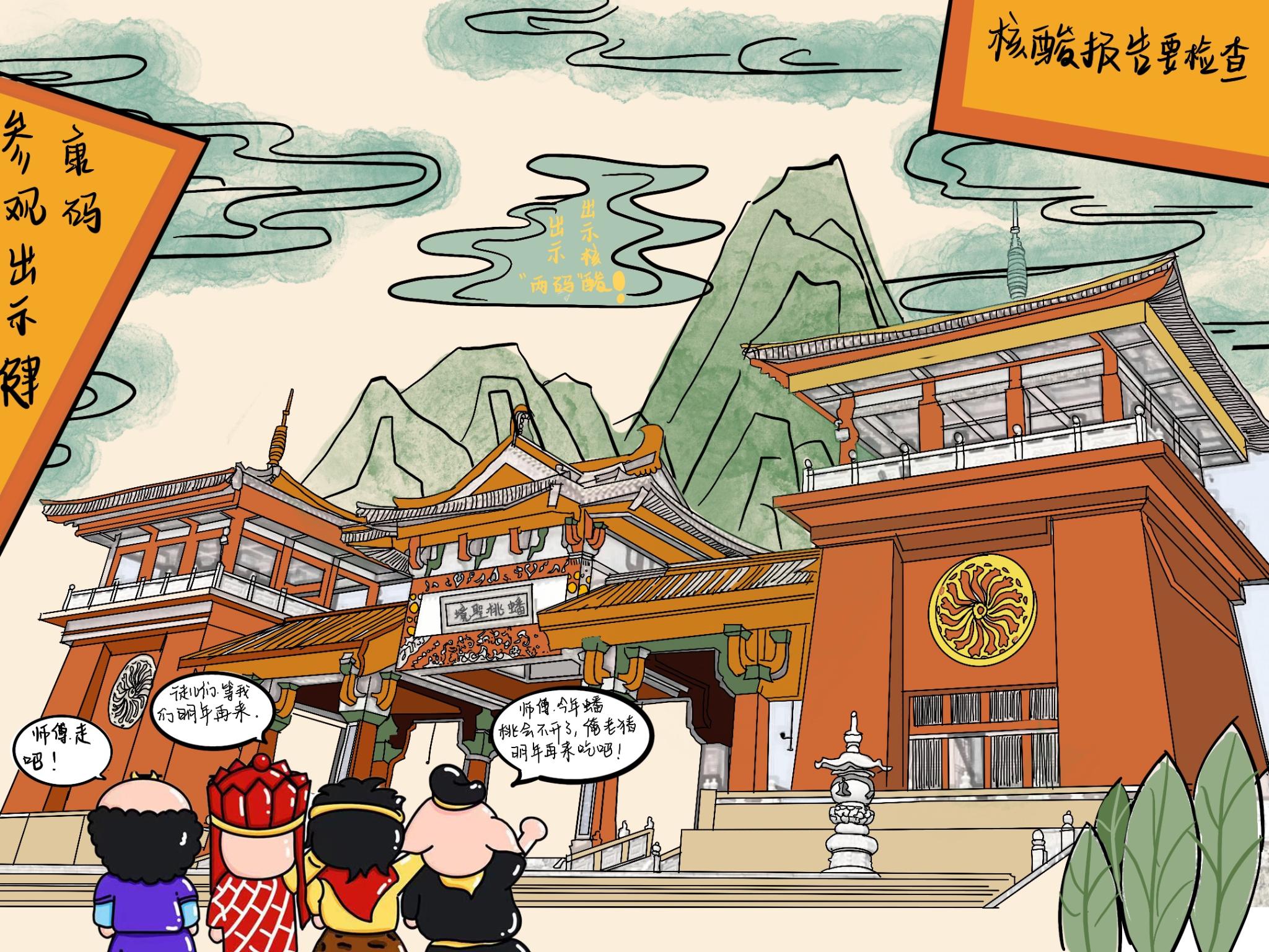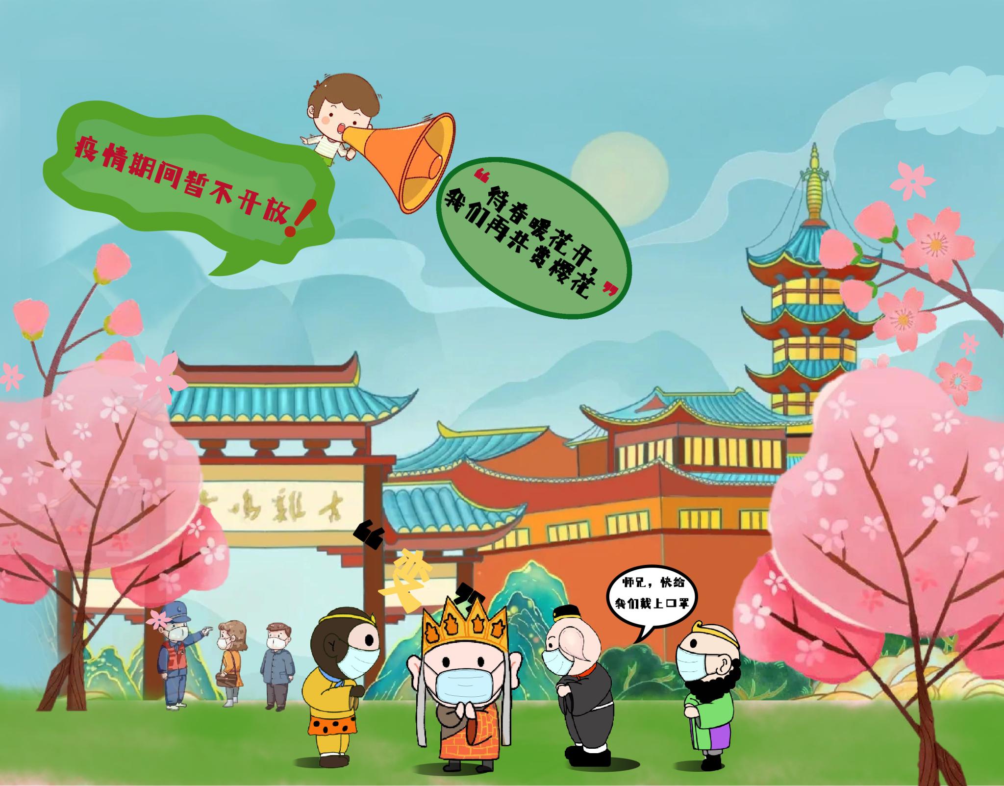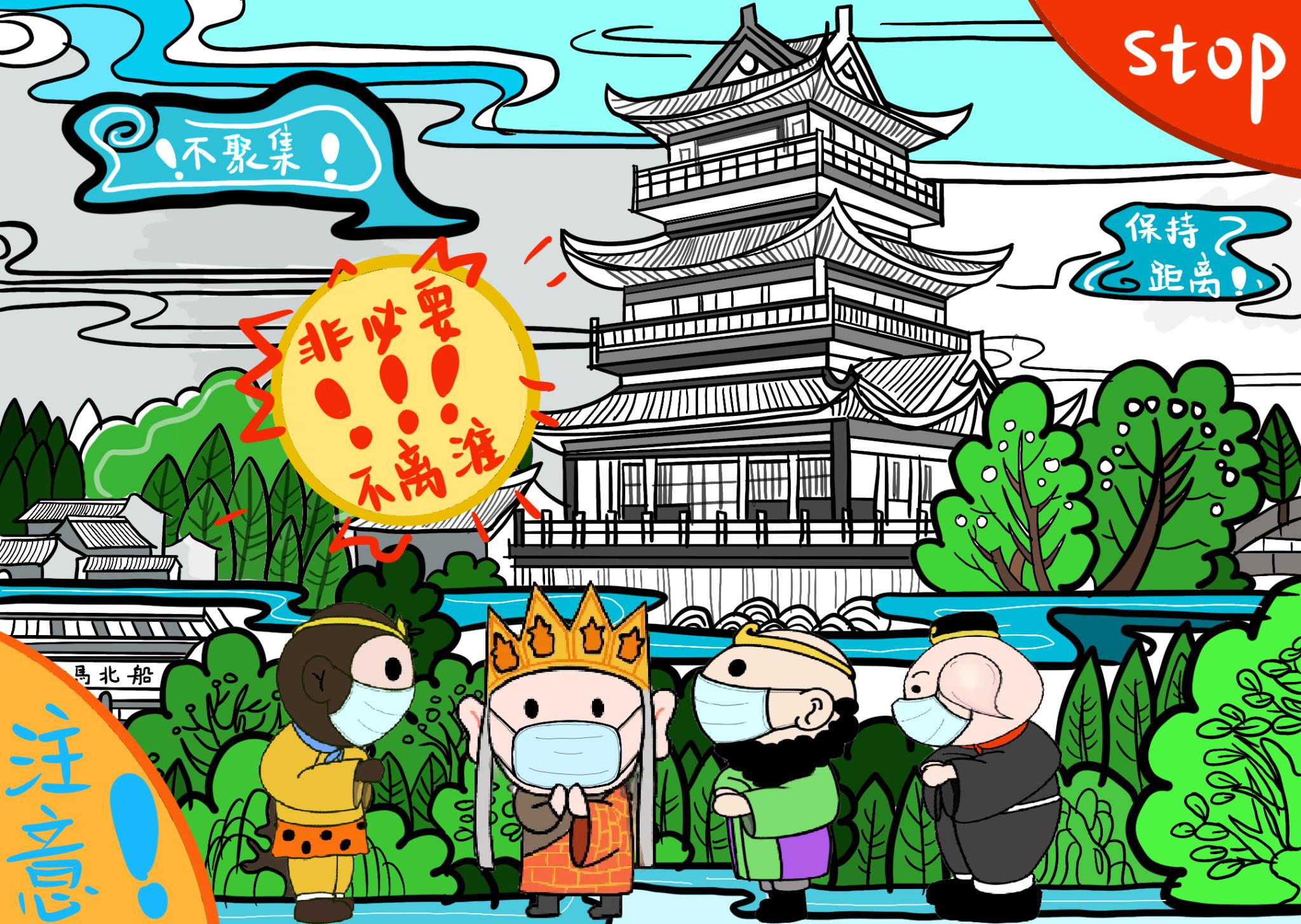 淮安是《西游记》的发源地,美院学子利用“唐僧师徒四人”卡通形象发挥想象进行创作,将“唐僧师徒四人”的卡通形象化身“疫情防控宣讲团”对防疫事项进行宣传。以江苏省13个地级市作为背景,针对各地特色,结合各地疫情防控要求,通过漫画的形式引导大家掌握防疫知识,自觉遵守防疫要求,不聚集,不乱跑,加强防疫期间自我防护,共同构筑疫情防线。