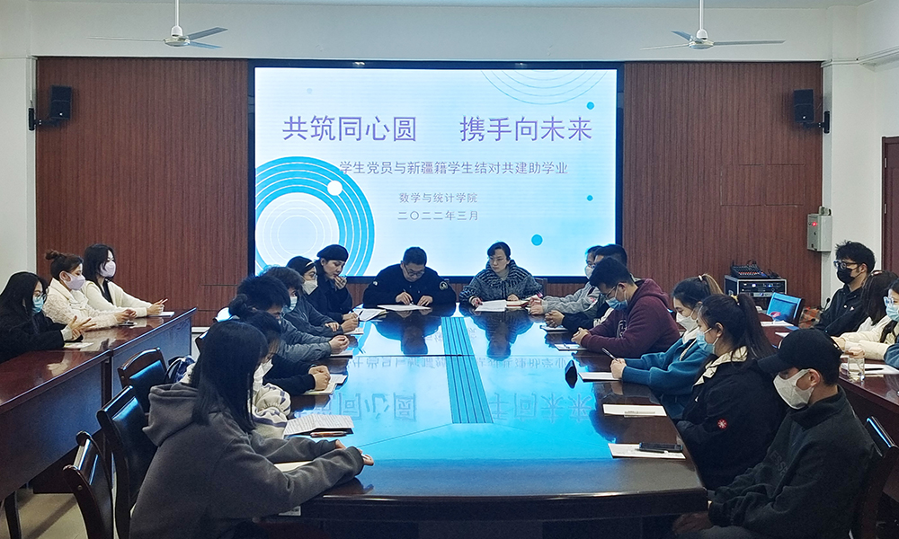 淮师新闻网4月2日电(记者 刘小琰 王白丽 )3月31日晚,数学与统计学院在理北315会议室举办“共筑同心圆,携手向未来”生生共建活动。学院党委副书记戴云、党委学生工作部加依达尔、13名新疆籍学生和13名学生党员代表参加活动。活动由院学生工作办公室主任王白丽主持。