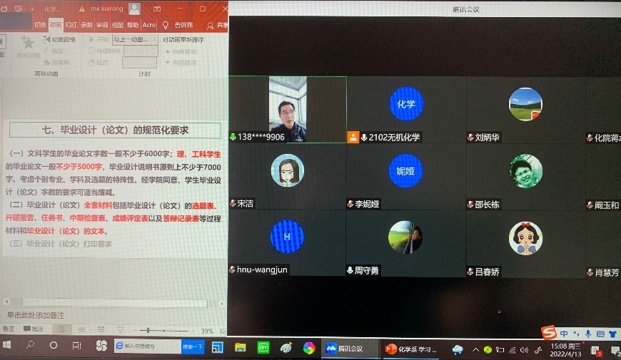 淮师新闻网4月13日电(记者 李梅生)4月13日下午,化院以系为单位开展了“学院定主题,系科定主讲,教师与讨论”的线上“云”教研活动。学院党政班子成员分别到联系的系科参加教研活动。