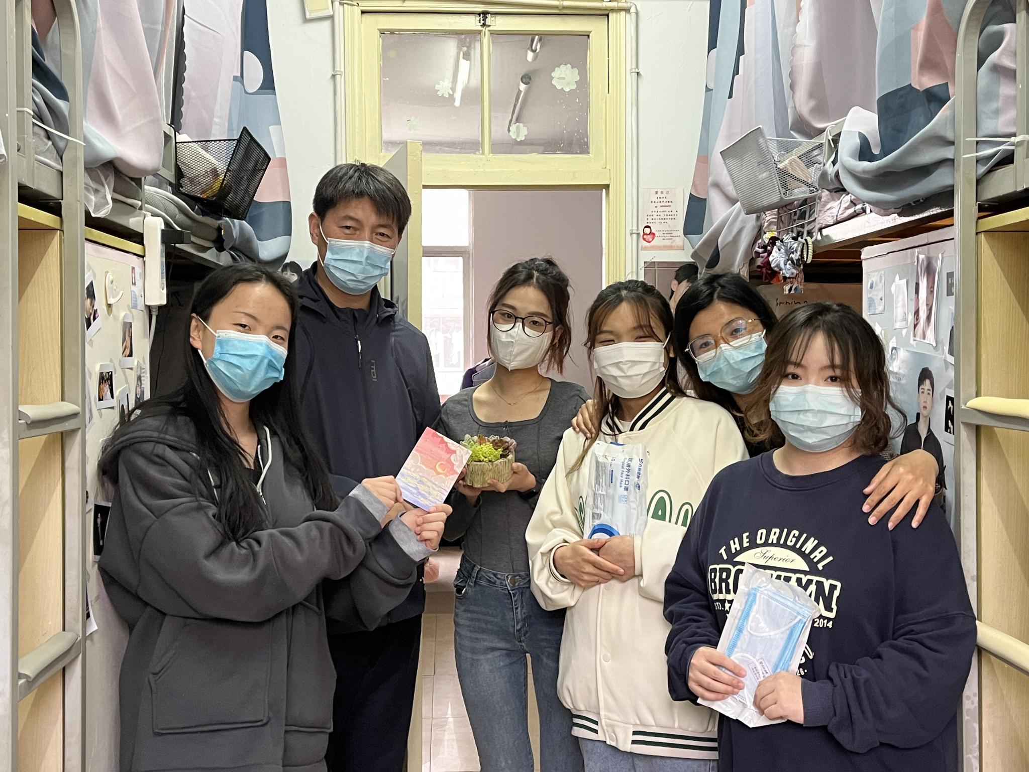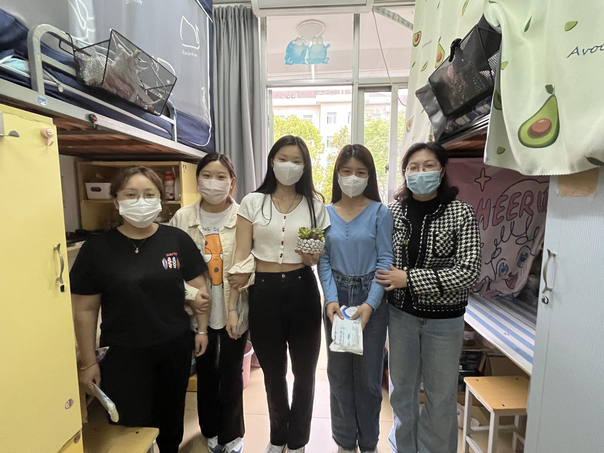 走访活动在轻松愉快的氛围中顺利展开,学生们的热情和积极的状态让老师们倍感欣慰,老师们为同学们送上了口罩,嘱咐同学们在校园里出行要时刻不忘戴上口罩;贴心送上了暖心卡片,鼓励同学们珍惜时光,专注学业;对在学院卫生评比中表现优秀的宿舍送上了可爱的绿色植物,希望同学们可以保持蓬勃的朝气和绿色的心情,微笑迎接生活的每一天。