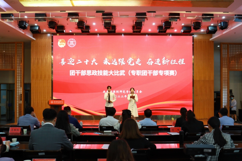 据悉,校团委于今年3月启动开展“喜迎二十大、永远跟党走、奋进新征程”全校团干部思政技能大比武活动。大比武分为教师和学生两个组别,分别开展了基层团支部书记专项赛、专职团干部专项赛等。自大赛启动以来,全校各级团组织广泛组织,踊跃参赛,形成了“以赛促学、以赛促建”的良好氛围,激励着团员青年以实际行动喜迎党的二十大胜利召开!目前,通过校内选拔赛,共遴选出7名学生代表和4名教师代表参加省级竞赛。